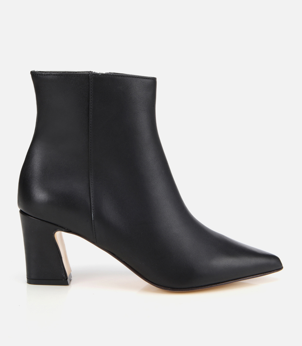 Kadın Deri Siyah Sivri Burunlu Bilekte Topuklu Bot