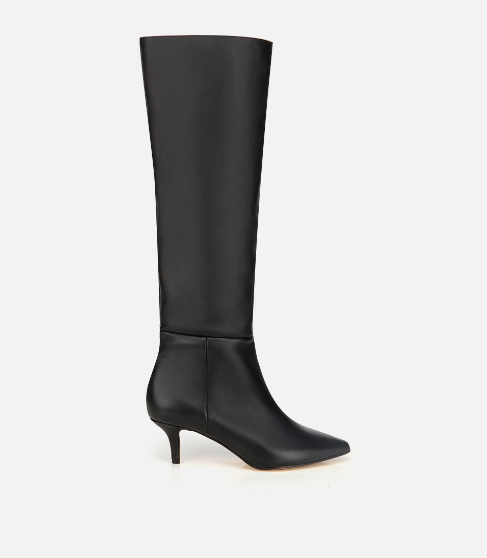 Kadın Deri Siyah Sivri Burunlu İnce Topuklu Çizme