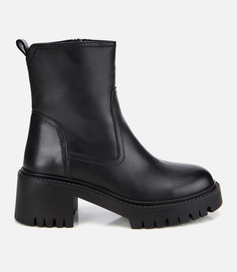 Kadın Deri Siyah Streç Bilekte Düz Bot