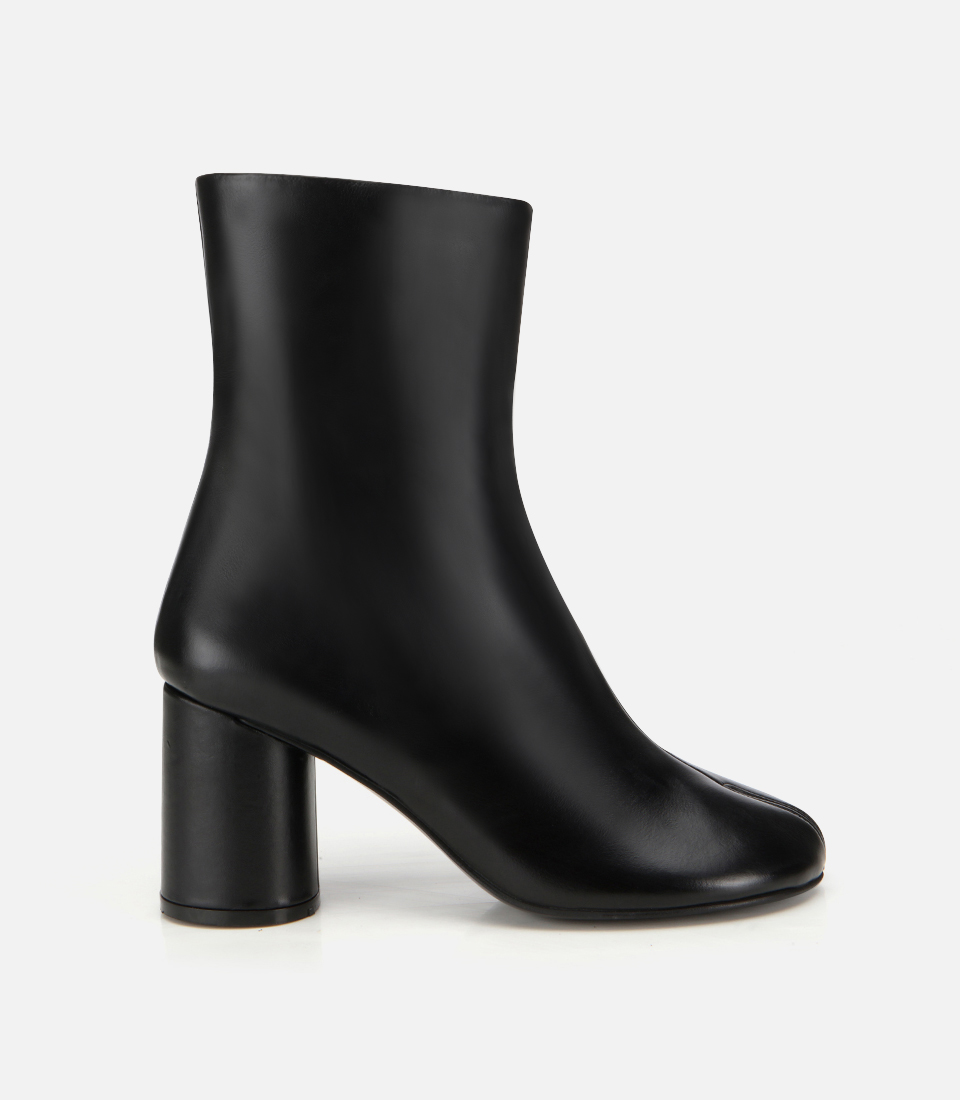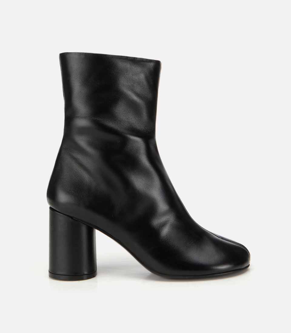 Kadın Deri Siyah Streç Blok Detaylı Topuklu Bot