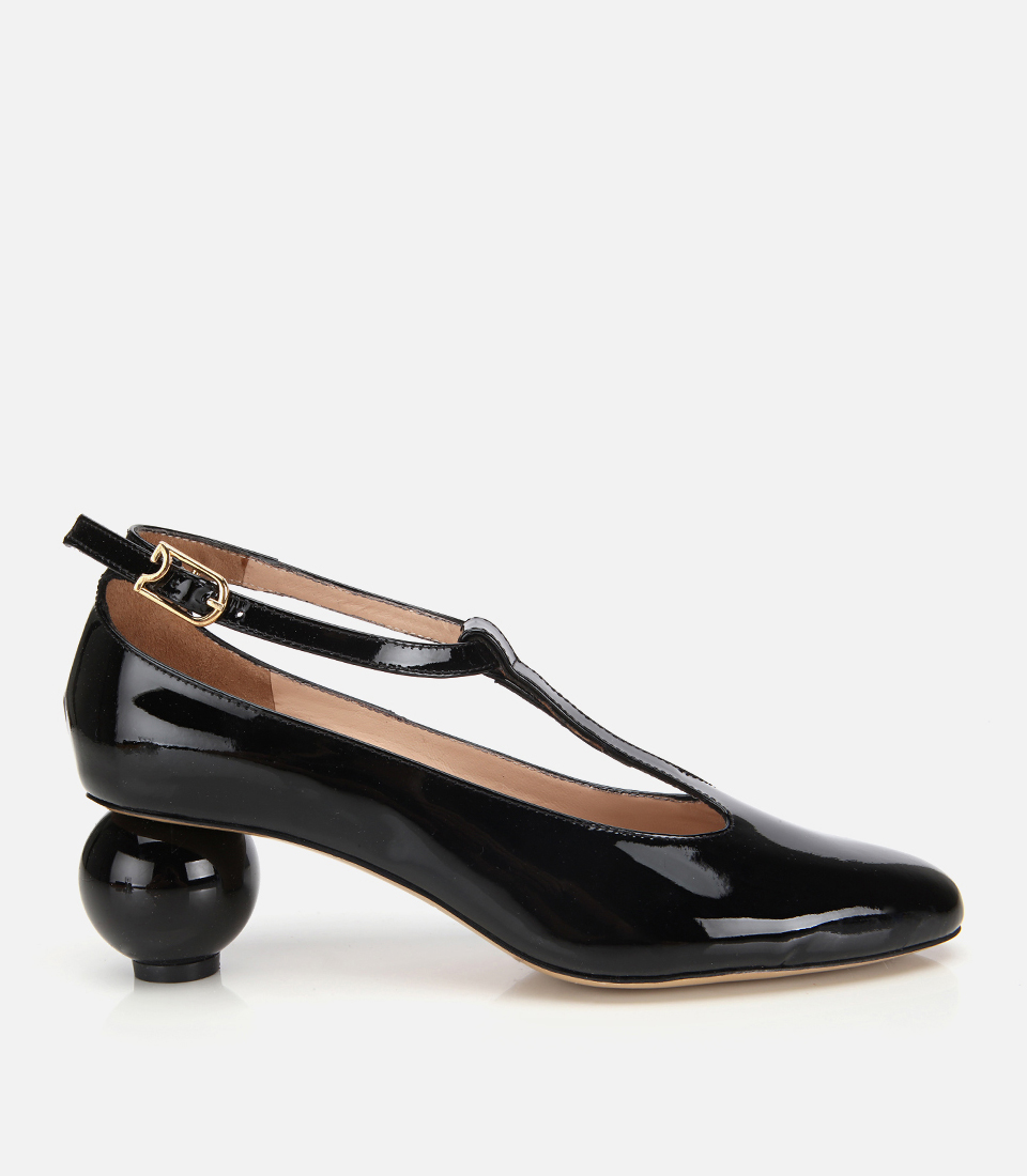 Kadın Rugan Deri Siyah Blok Topuk Detaylı Topuklu Ayakkabı