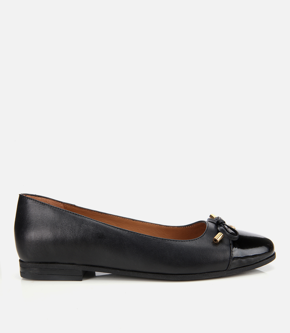 Kadın Rugan Deri Siyah Fiyonk Detaylı Babet
