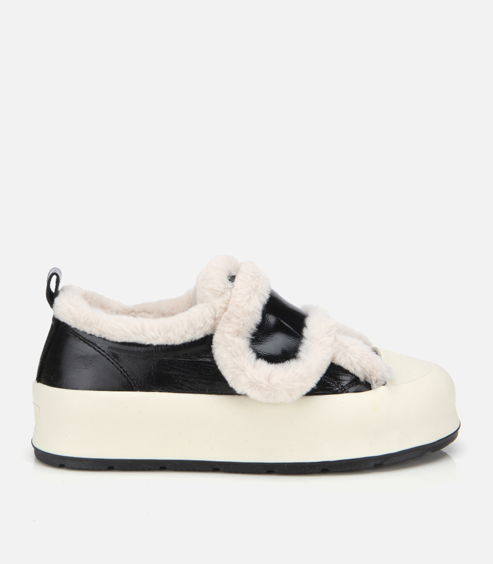 Kadın Rugan Deri Siyah İçi Kürklü Kalın Bantlı Spor Ayakkabı