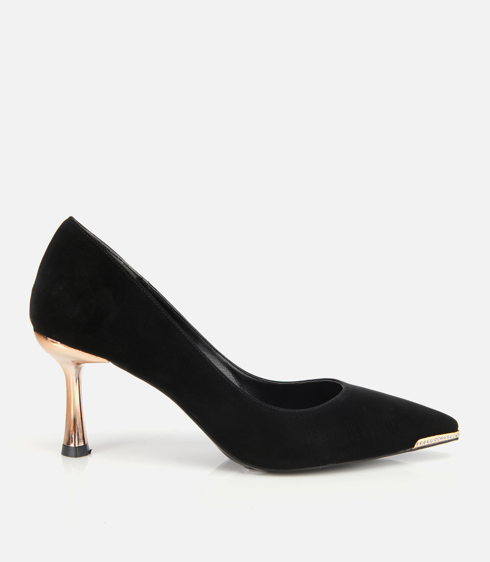 Kadın Saten Siyah Gold Detaylı İnce Topuklu Stiletto