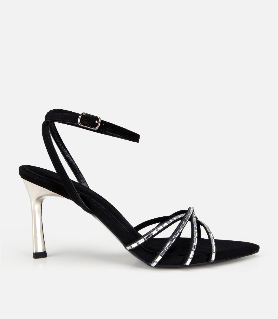 Kadın Siyah Gold Detaylı Bilekten Bağlamalı Topuklu Sandalet