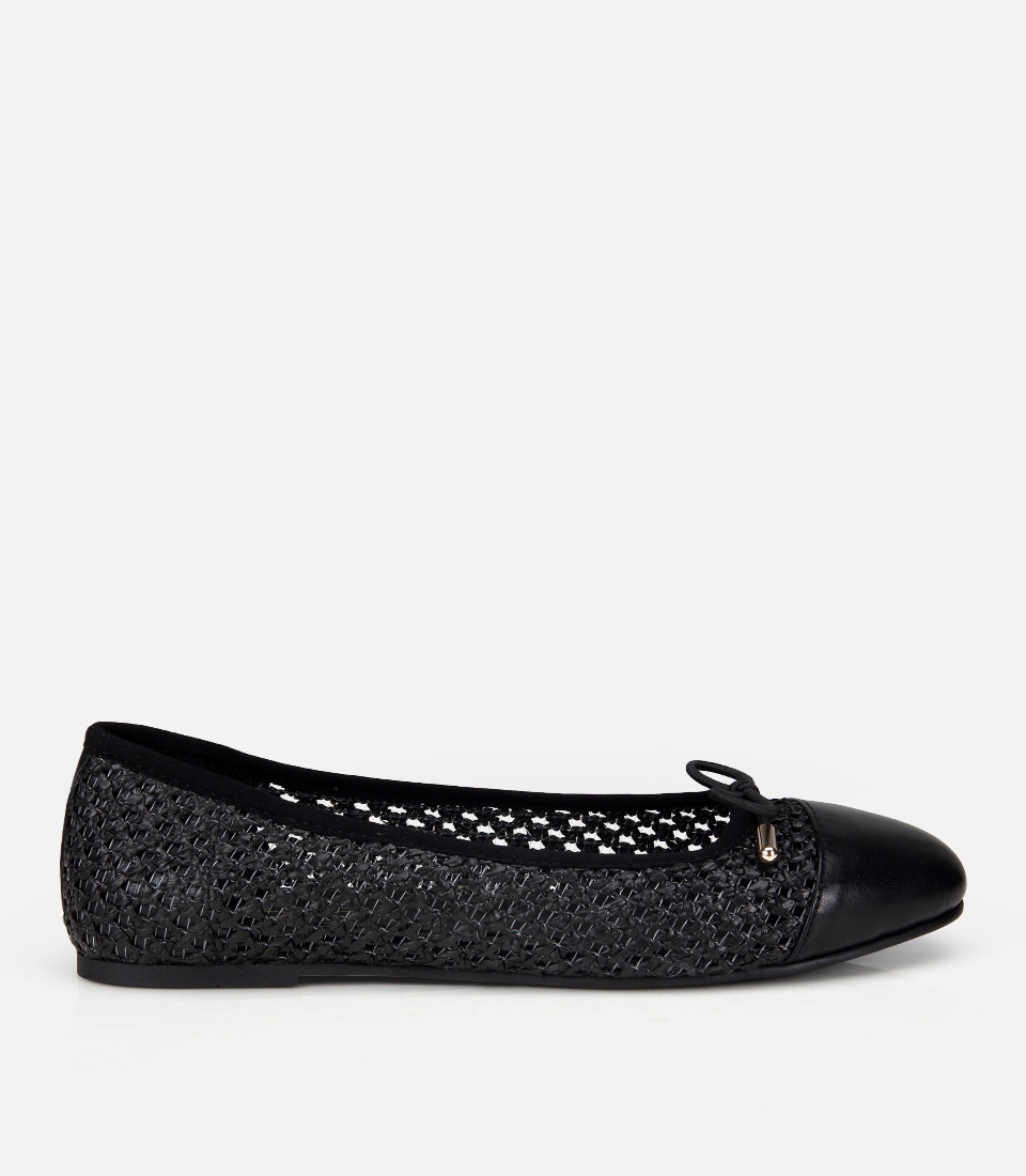 Kadın Siyah Hasır Detaylı Fiyonklu Babet