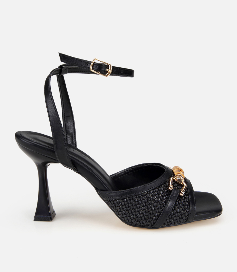 Kadın Siyah Hasır Detaylı Tokalı Topuklu Sandalet