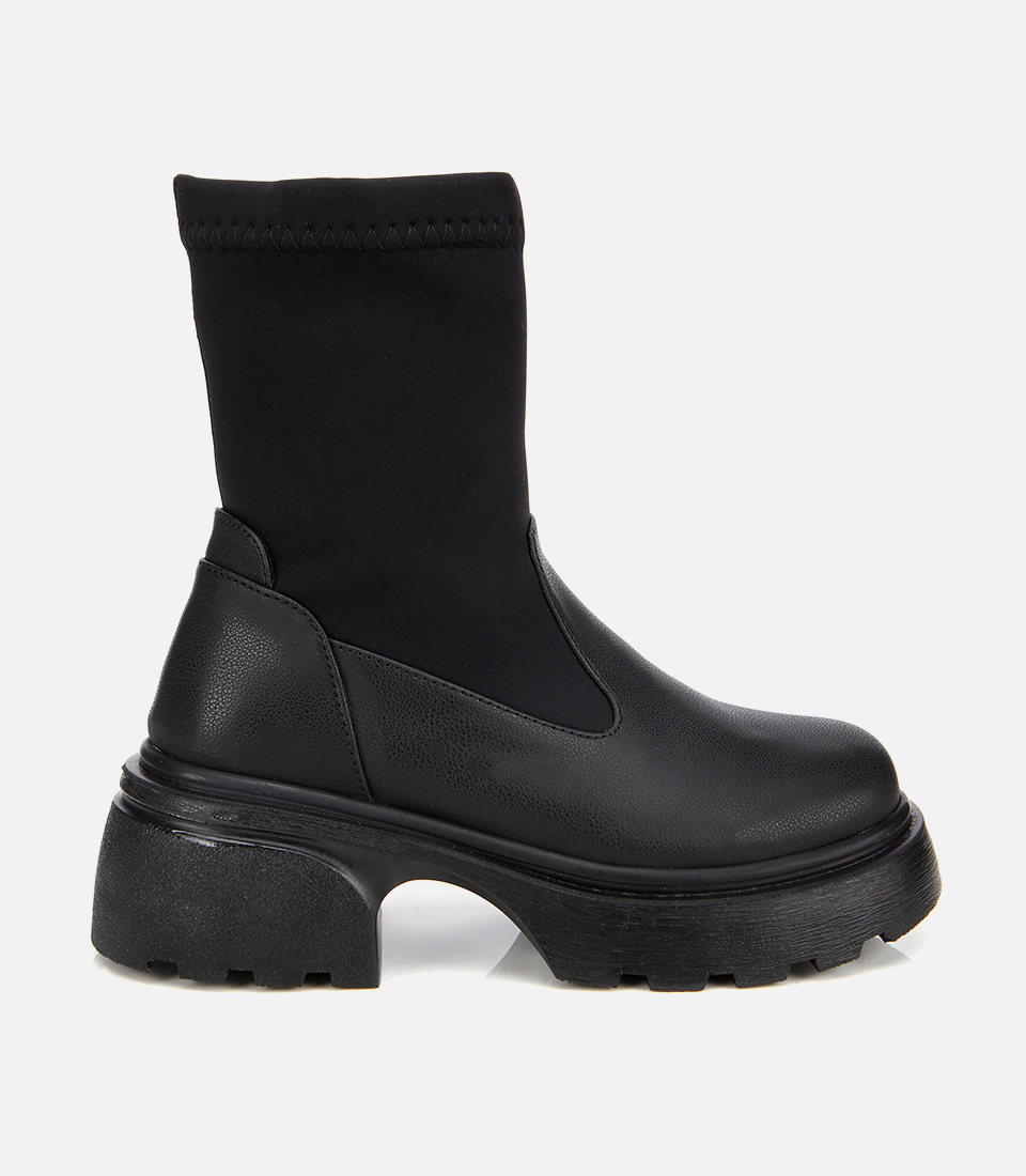 Kadın Siyah Streç Kalın Tabanlı Bilekte Düz Bot