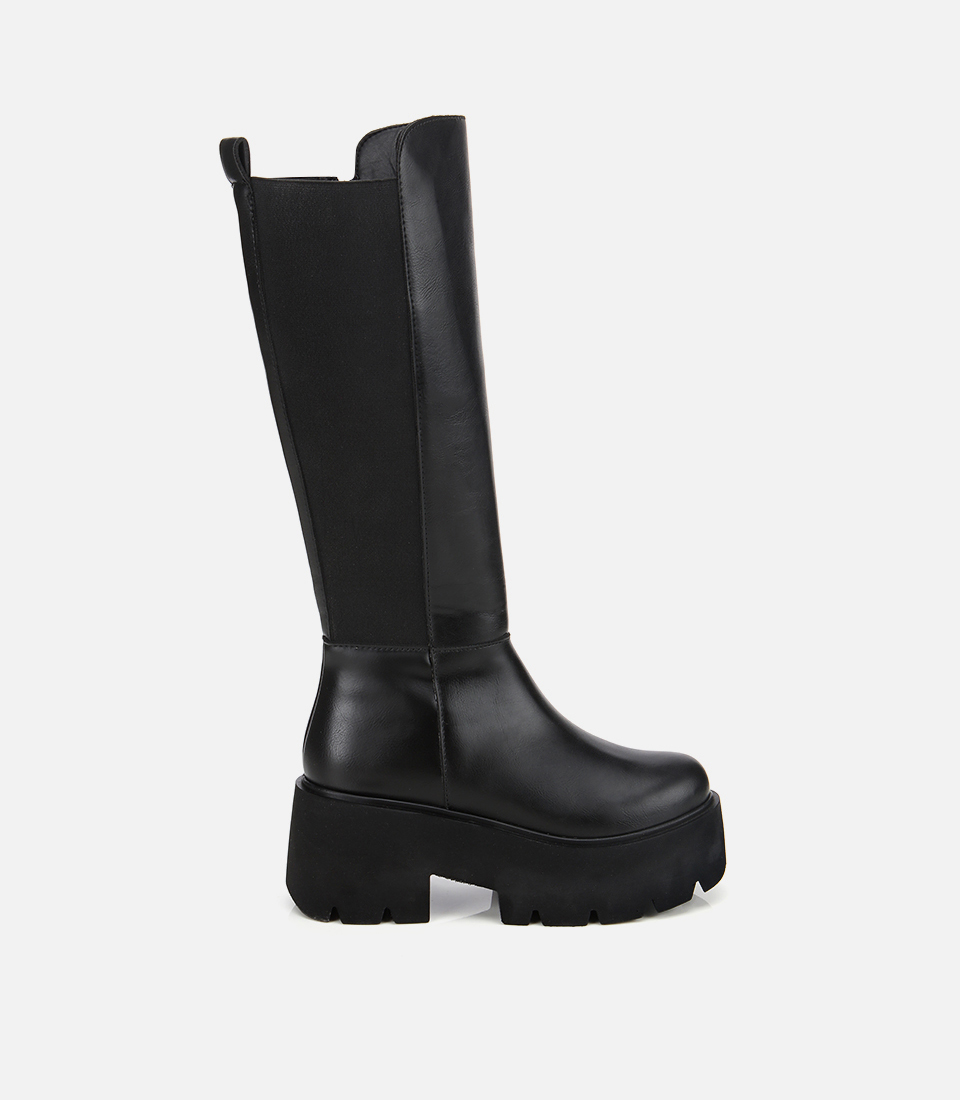 Kadın Siyah Streç Kalın Tabanlı Düz Çizme
