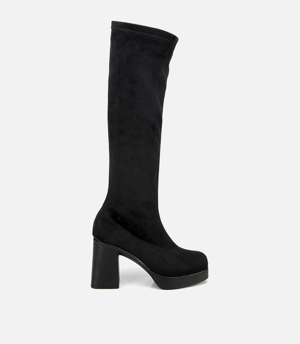 Kadın Siyah Streç Kalın Tabanlı Yüksek Topuklu Çizme