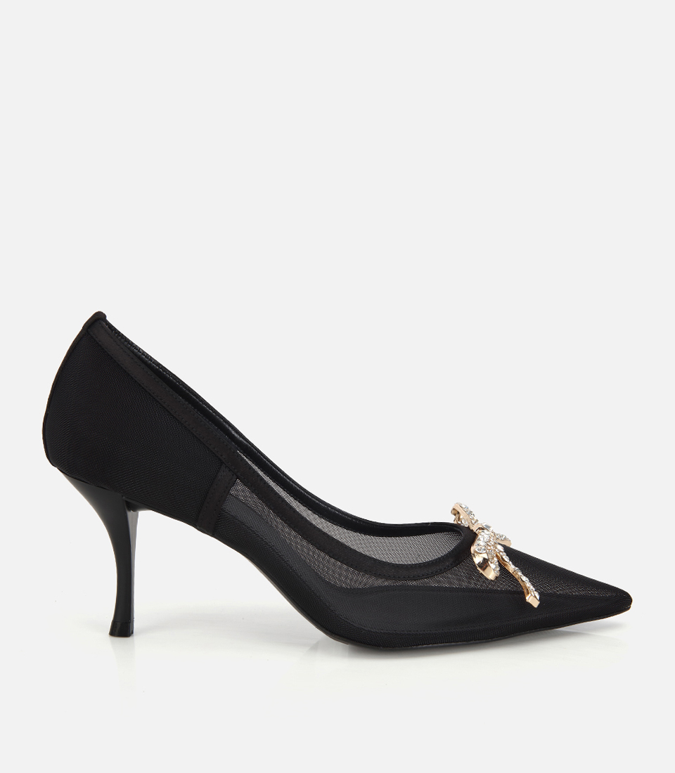 Kadın Siyah Transparan Fiyonk Detaylı Stiletto