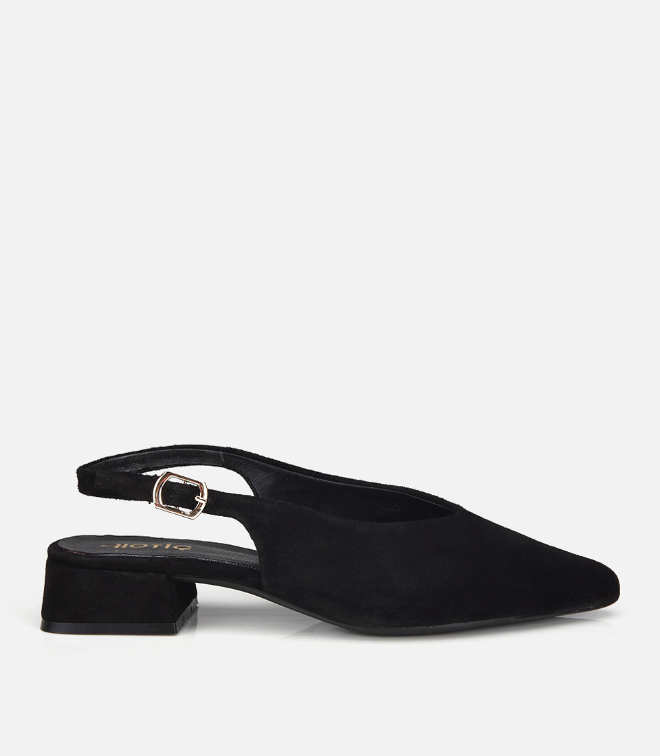 Kadın Süet Deri Siyah Arkası Açık Sivri Burunlu Babet