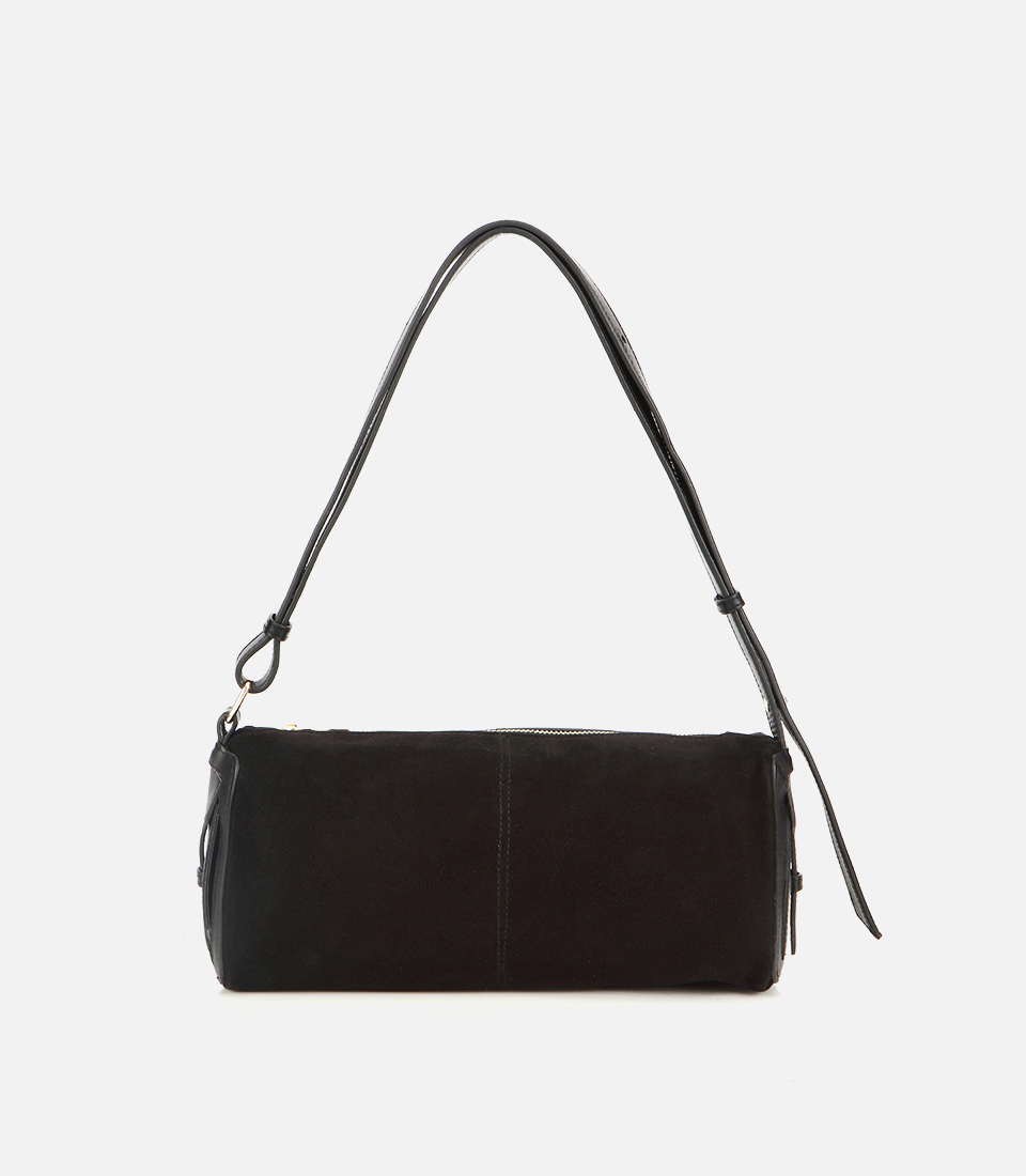 Kadın Süet Deri Siyah Bowling Omuz Çantası