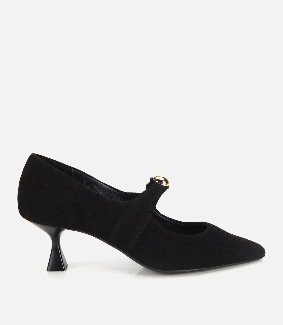 Kadın Süet Deri Siyah Gold Toka Detaylı İnce Topuklu Stiletto