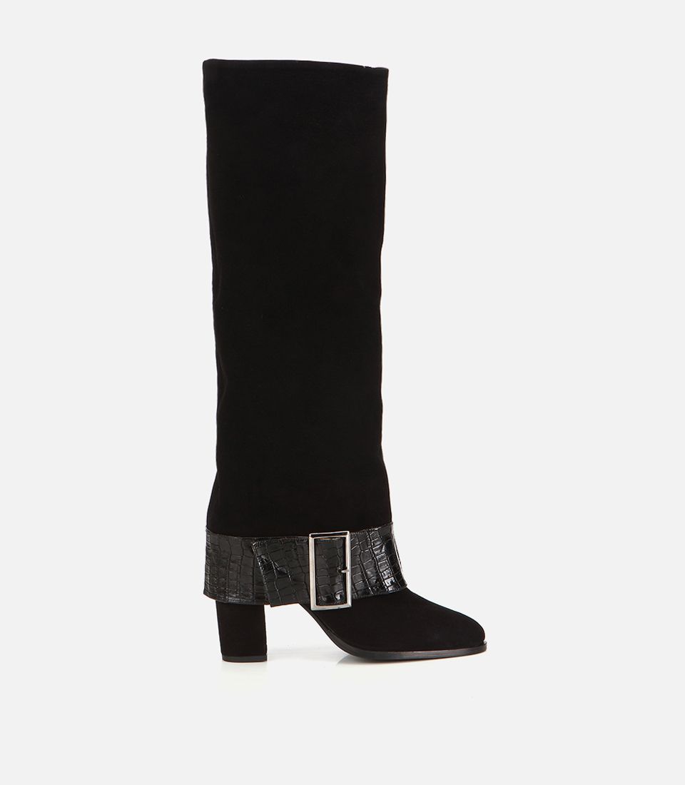 Kadın Süet Deri Siyah Kemer Detaylı Topuklu Çizme