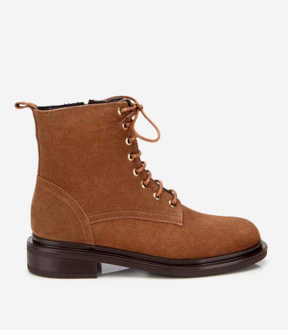 Kadın Süet Deri Taba Bağcık Detaylı Fermuarlı Düz Bot