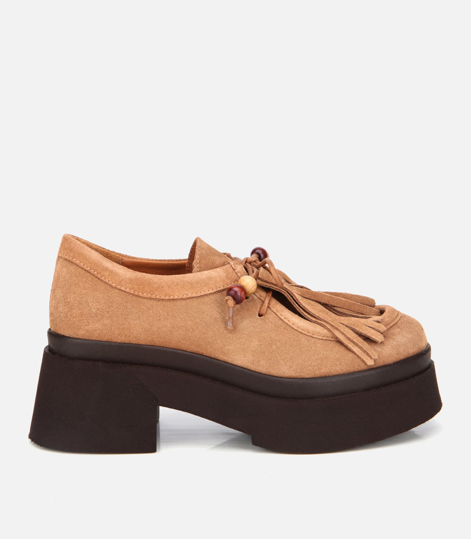 Kadın Süet Deri Taba Püskül Detaylı Kalın Tabanlı Günlük Loafer