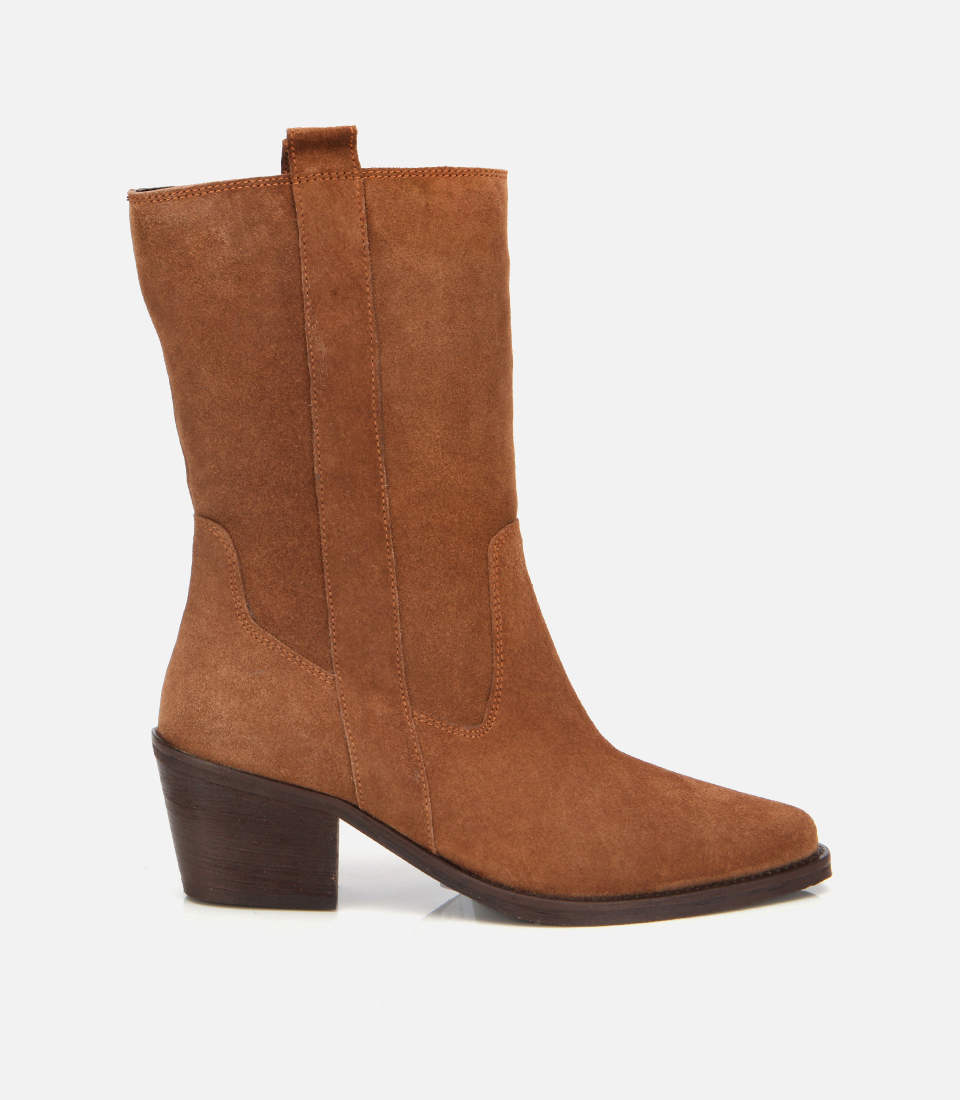 Kadın Süet Deri Taba Western Kovboy Topuklu Bot