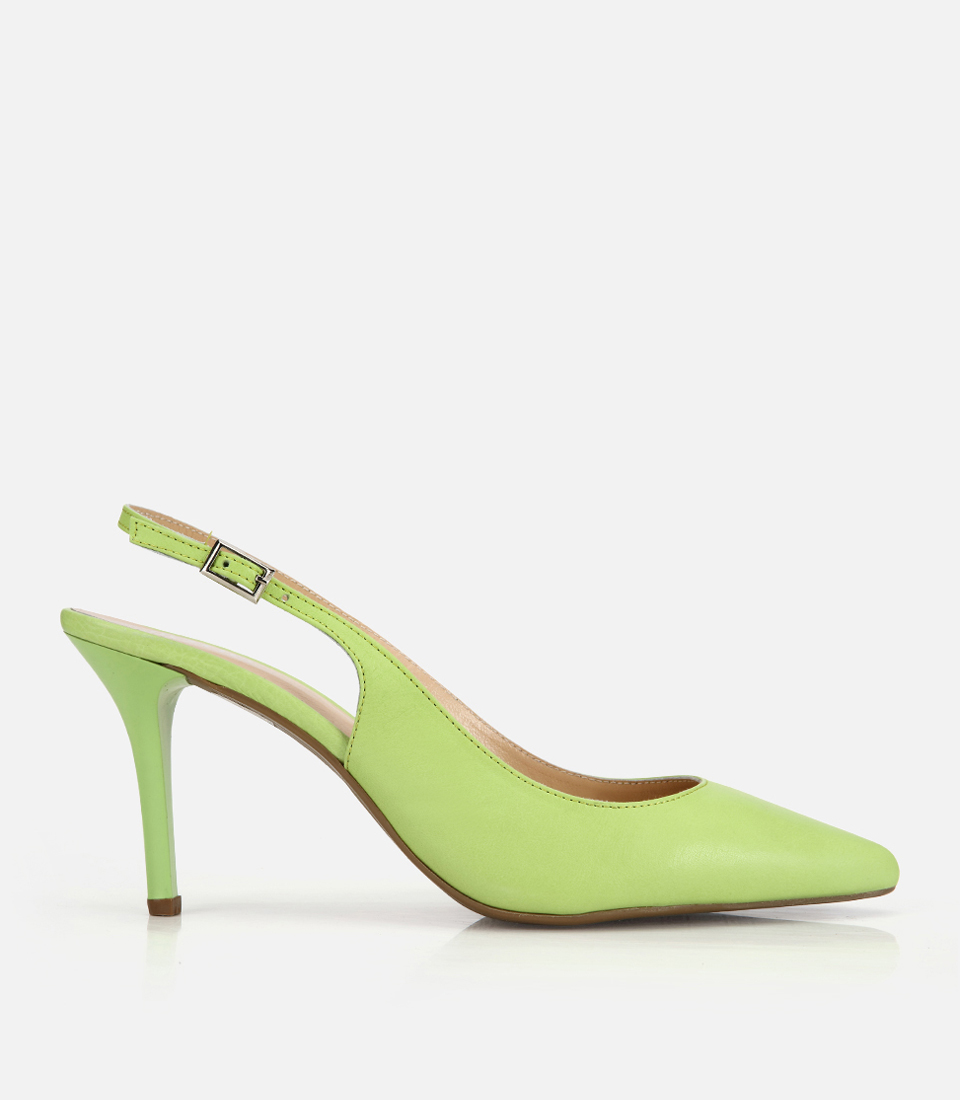 Kadın Deri Yeşil Arkası Açık Stiletto
